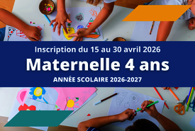 Maternelle 4 ans 2026-2027 : inscription du 15 au 30 avril 2026